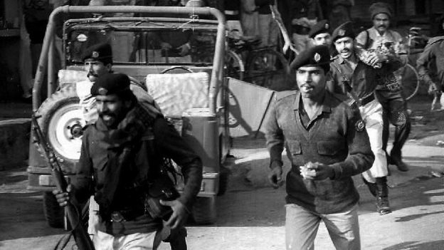 ‘اس کے بعد تو گولیوں کی بوچھاڑ ہونے لگی۔ میں نے نوریا سے کہا کہ میں تھوڑی دیر بعد فون کرتی ہوں۔ میں زلفی کو گود میں لیے ڈرائنگ روم کی طرف بھاگی۔ ماں بھی دوڑتی ہوئی وہاں پہنچی۔ ہم وہاں آدھے گھنٹے بیٹھے رہے۔ ہم نے اپنے چوکیدار کو باہر یہ دیکھنے کے لیے بھیج دیا کہ وہاں کیا ہو رہا ہے۔’